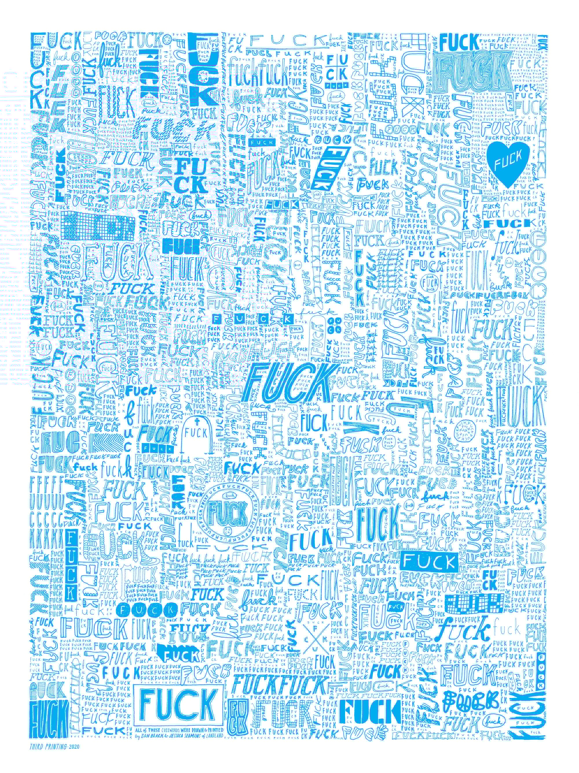 An art print we originally made to celebrate the HBO show "Deadwood," where they dropped the f-bomb nearly 3000 times, but revived for these weird 2020 times, where we've dropped the f-bomb at least that many times and probably much, much more.
