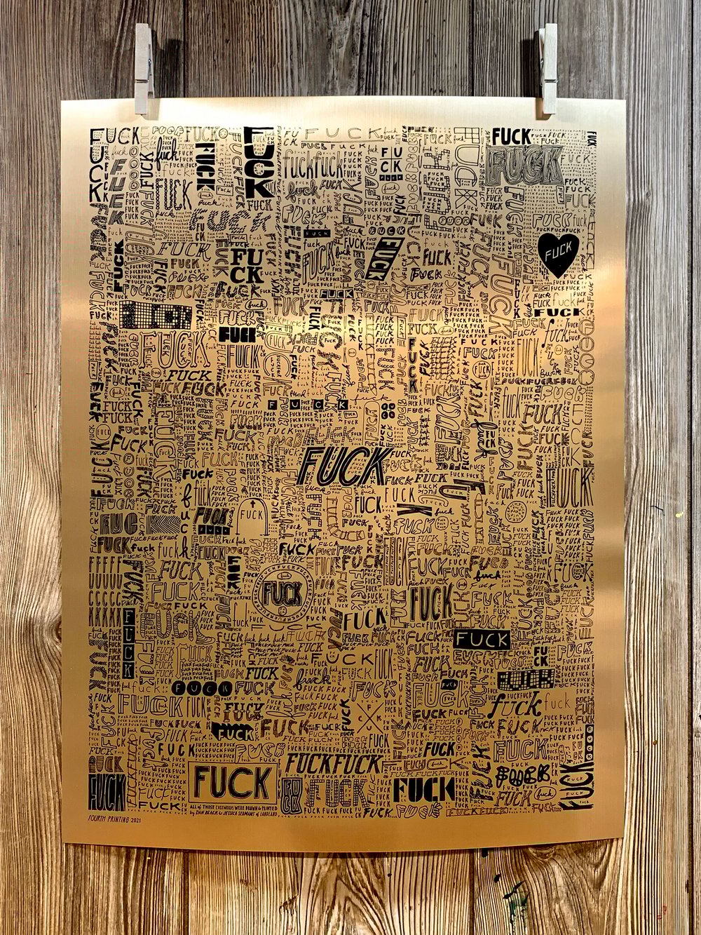 An art print we originally made to celebrate the HBO show "Deadwood," where they dropped the f-bomb nearly 3000 times, but revived for these weird 2020 times, where we've dropped the f-bomb at least that many times and probably much, much more.
