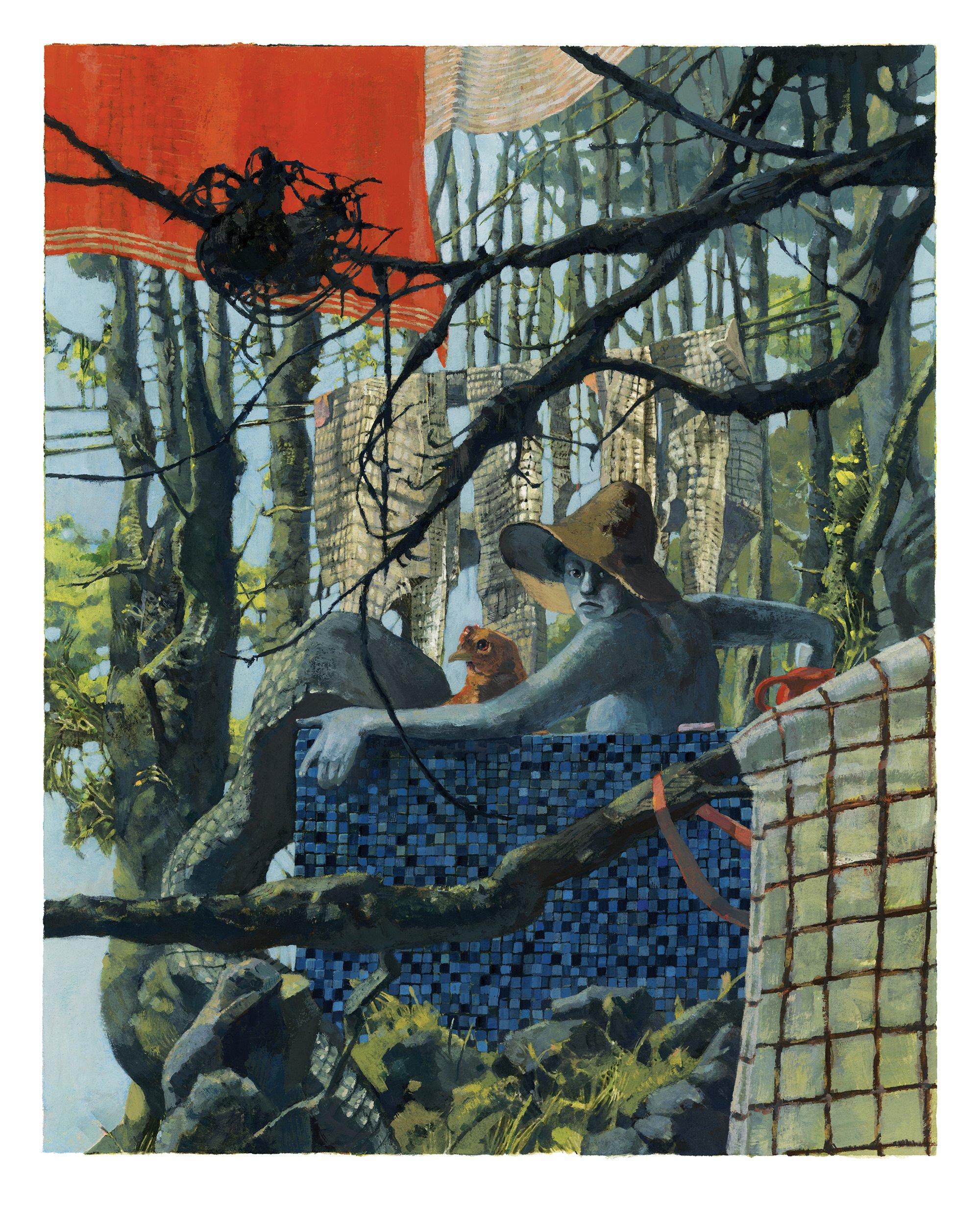 An art print made from Jes' 2020 piece for "Wilderness," a show at Antler PDX. Originally acrylic gouache on paper, based on a story from European folklore."Melusine II"